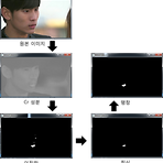 YCbCr을 이용하면, 입을 검출할 수 있다는 논문을 보았다. 헌데.. 잘 검출이 되지 않는다. 왜지... 생각은 이렇다. 얼굴영역의 입은 다른 구역보다 색이 붉다. 그렇다면 이런 특성을 이용하면, 입을 검출할 수 있다. (아래 사진은 탤런트 김수현이다.) 원본 이미지에서 Cr성분 1채널로 변경 후, 이를 이진화 처리한다. 이진화 처리된 값은 입술 뿐만 아니라 다른 영역도 조금 잡게 된다. 이는 모폴로지 연산을 통해 처리하면 된다. 우선 침식을 통해 잡음을 제거하고, 팽창을 통해 그 위치를 확실하게 해준다. #include "cv.h" #include "highgui.h" IplImage* getCr(IplImage *image); int main() { // Load original image, Ima..